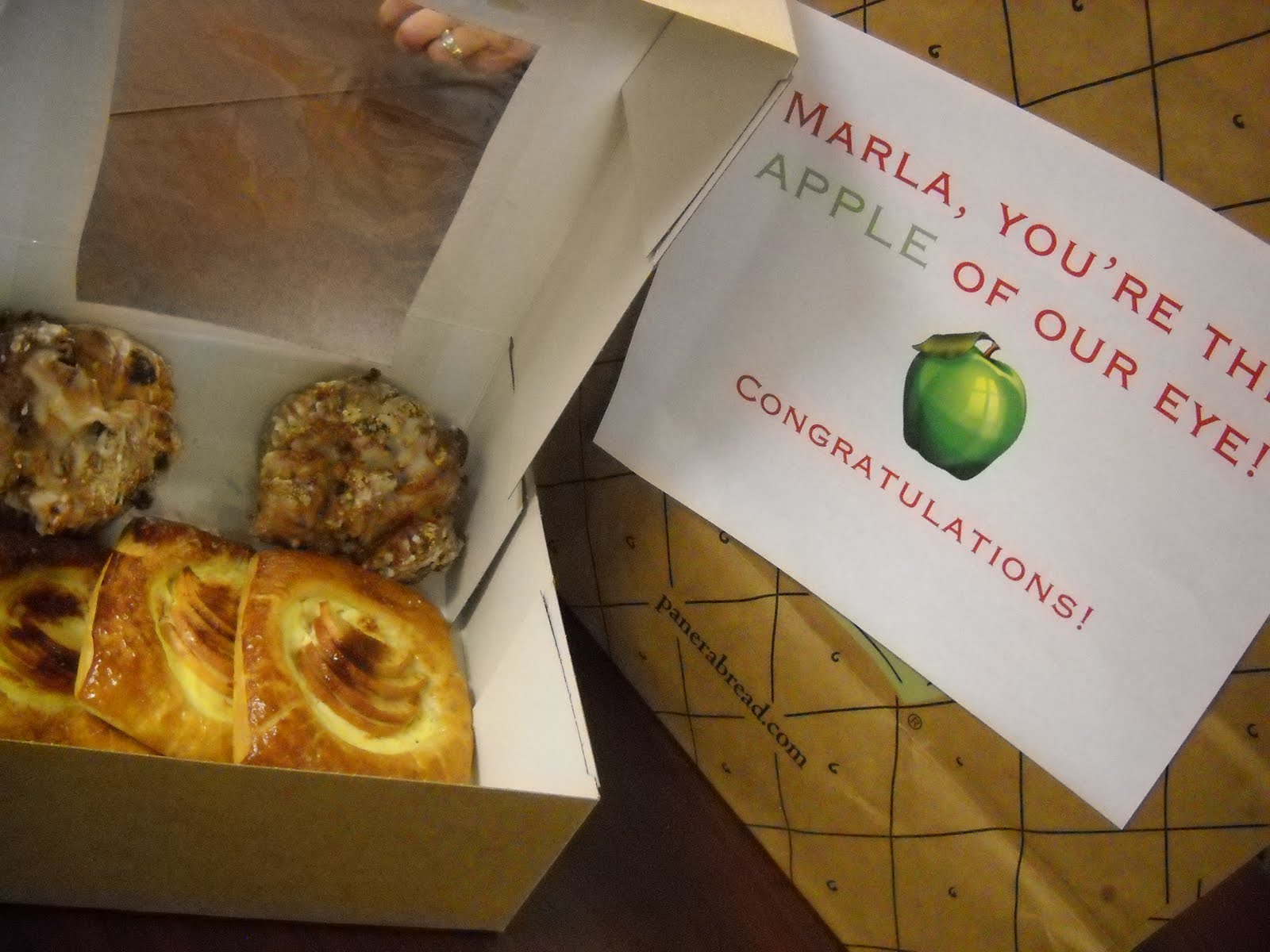 We took her some yummy apple treats from Panera Bread!